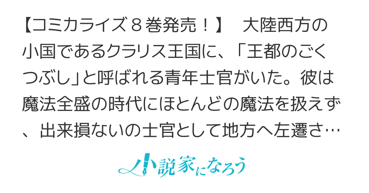 紹介するまでもない大人気アニメの原作ですね。ここでレビューを書いてもしかたないので、思い出話でも。私がいつもスマホでなろう小説を見ているので子供に何か読んでとせがまれて選んだのが、いつでも総合ポイント第1位のこの作品です。冒頭何話かを読み聞かせたのですがさすがに限界を感じて本作のアニメを見せてみました。なんということでしょう、あんなに苦労して朗読したストーリーが、アニメだとさくさく進んでいきます。アニメ最高という思い出です。結局子供は気に入って第1クールをアニメで見ましたが、ストーリーが内政メインになったあたりでまだ小さかったのでよく理解できなくなったようで第2クールは見れませんでした。第1クールは主人公やスライムがかわいらしくて楽しく見れたようです。全304話完結済み。