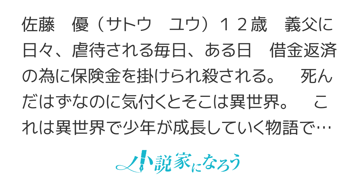 義父に虐待の末殺され異世界転移した主人公。転移先でもなぜか村八分の憂き目に遭い落胆する中、強奪スキルに気付き…。伏線を含めストーリーが良く考えられていて、文章もしっかししていて読みごたえがあります。2年以上更新がありませんが327話まであるので十分満足できると思います。