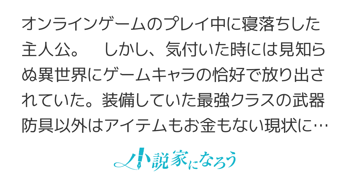 数あるなろう小説の中から選んだおすすめの中でも、さらに頭一つ抜けた作品です。主人公は生きるのに不器用で、たまたまうまく行くと不安になるほど不遇ながらも、屈しません。社会と折り合いをつけるため何を捨て何を残すのか。ストーリーはファンタジー、集団異世界転移作品として面白いですが、特筆すべきは文芸作品としても申し分ないことです。驚くべきことにいずれの要素も過不足なく調和しています。文章も素晴らしく、冗長に感じて地の文を読み飛ばすようなこともありませんでした。全144話未完。
