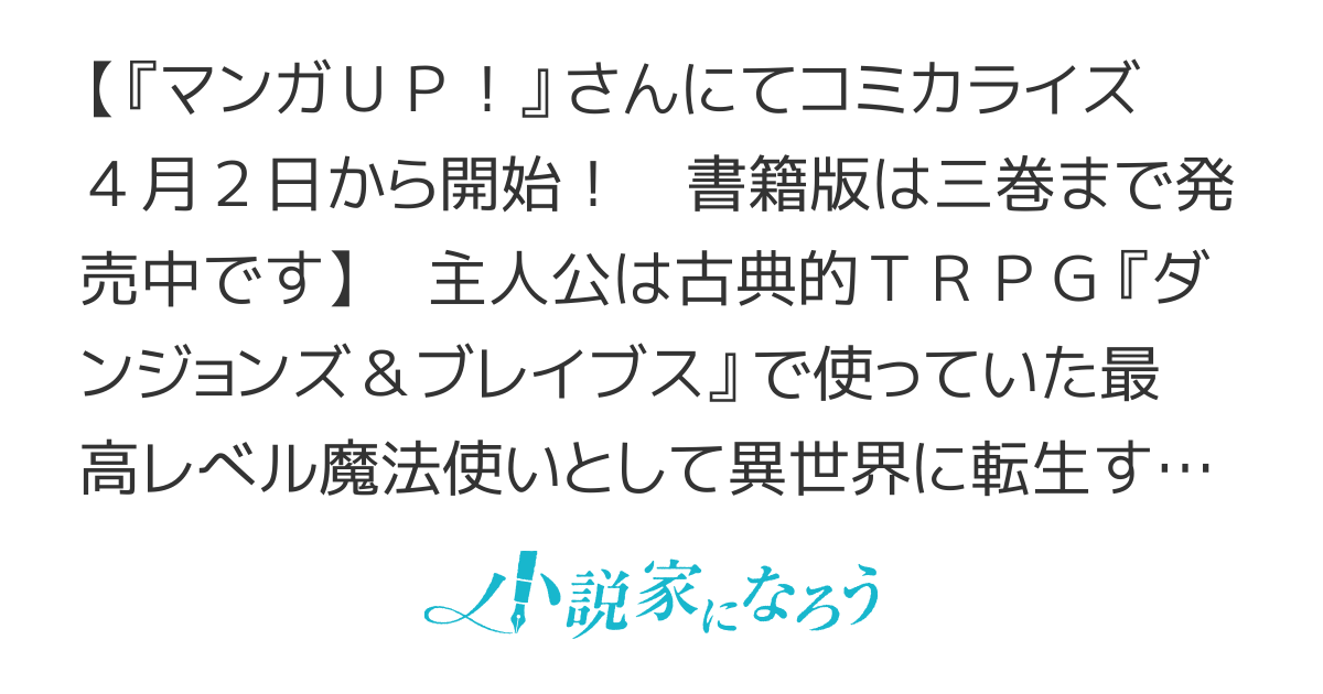 主人公は自身が長年楽しんで育てていたTRPG(Table Talk Role-Playing Game)のキャラクターの能力をもとにした魔法使いとして異世界へ転移する。このため異世界の中でも異色の存在となり、独特の戦闘シーンが展開される。これはおじさんが変わった魔法を駆使して苦労しながら活躍する物語。全240話連載中。