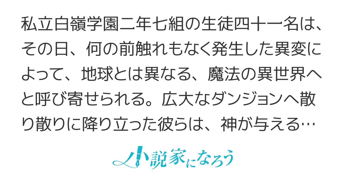異世界クラス転移もので魅力のあるキャラクターのクラスメイトがたくさん出てきます。黒の魔王の作者の作品です。先が気になるストーリー展開はさすがで、とてもおもしろいです。主人公は男の娘?全442話連載中。