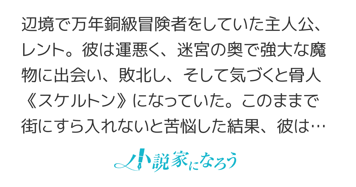 しがない冒険者だった主人公は迷宮で死にスケルトンに生まれ変わります。ですが魔物になってしまっても神銀級冒険者になる夢はあきらめません。文章もストーリーもしっかりしていて、登場人物一人ひとりも丁寧に描かれています。全667話連載中。長いです。