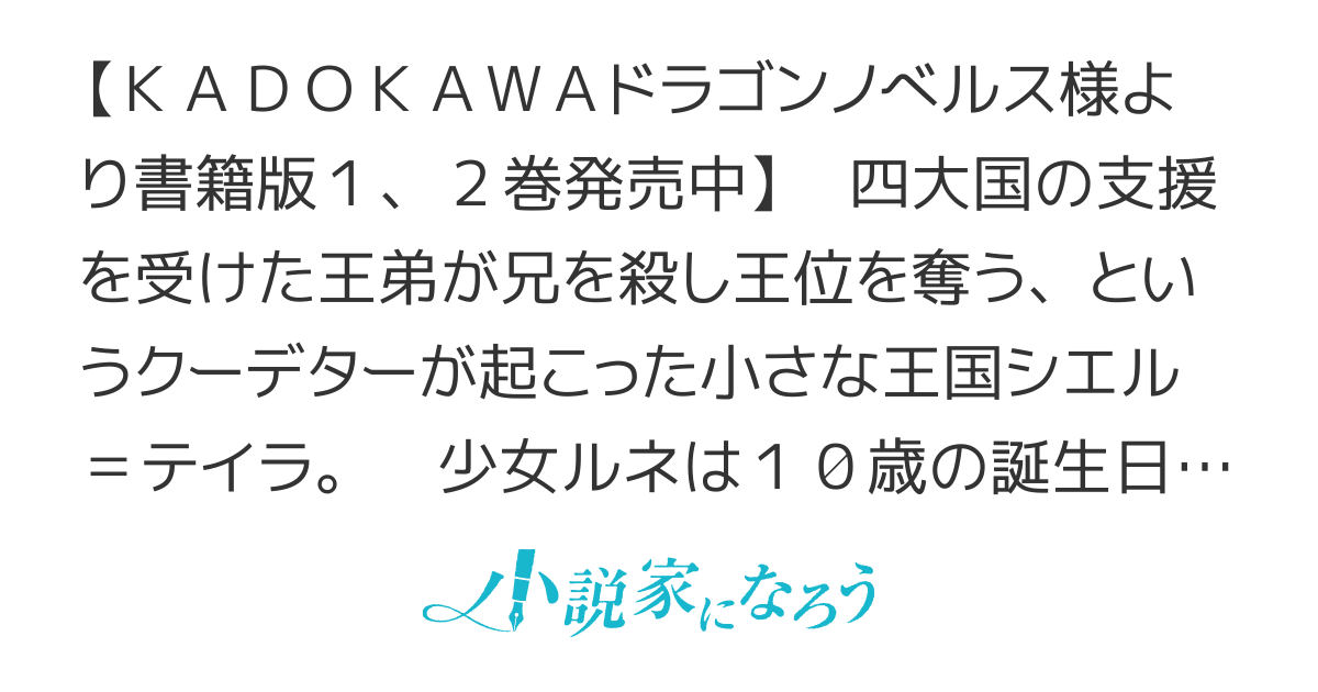 地方で母親と二人暮らしの主人公の少女は、10歳の誕生日に突然踏み込んできた騎士たちに捕縛されます。主人公は前王の娘で、クーデーターにより探し出されてつかまりましたが、自身の出自も知らず訳も分からずあらゆる拷問を受け続け、最後は母娘で民衆の前で処刑されます。その刹那前世を思い出し、神に騙されて転生していたことに気が付きます。邪神にチャンスを与えられた主人公は、人類に復讐することを誓います。度を越えて残虐なシーンもあるため、紹介するか迷いましたが、良く出来た作品です。全329話連載中。