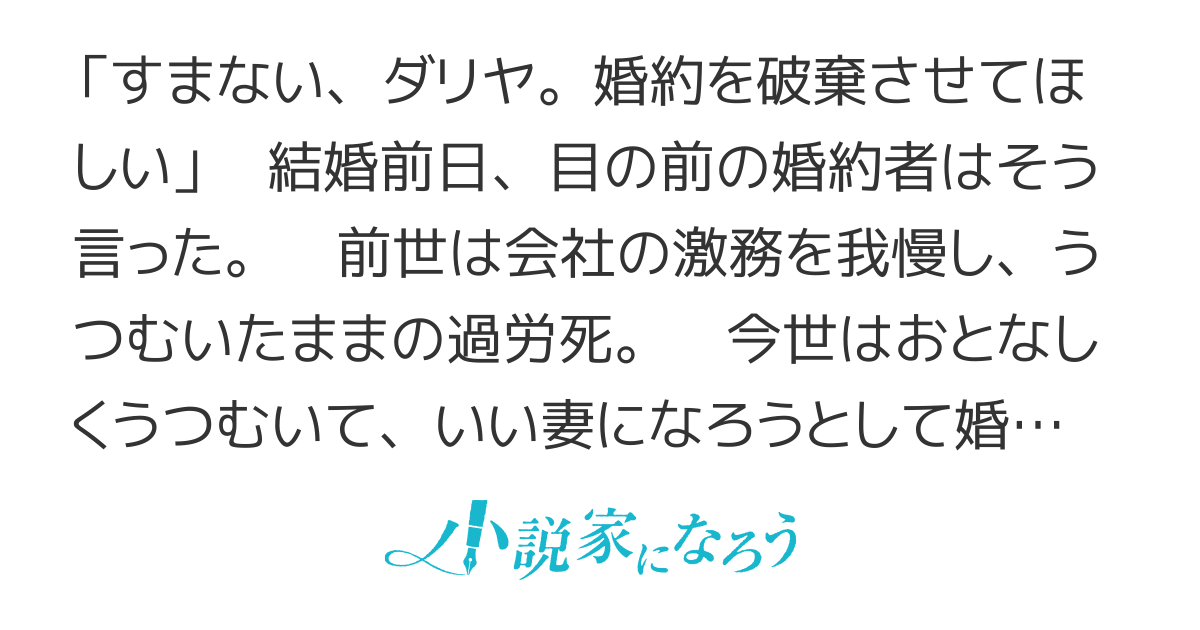 主人公は8歳のときに前世を思い出し、自分がゲームの世界の登場人物で、勇者の幼馴染として村を旅立つ勇者を見送るだけのキャラクターであることに気が付きます。ヒロインと結ばれて帰ってこない勇者をただ待つだけの負けヒロインは願い下げだと、手に職を持つため村の調合士に弟子入りしたところからストーリーが変わり始め・・・。ストーリーも心理描写もキャラクターも良く調和した異世界恋愛小説です。全178話完結済み。